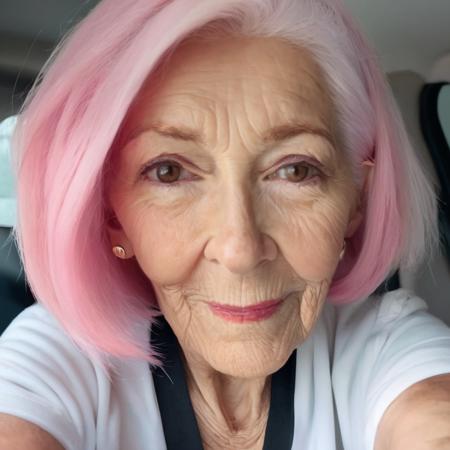 - a old granny with pink hair, 95 years old