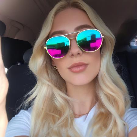 - a blonde woman wearing rainbow sunglasses, 19 years, instagram model, discord profile picture