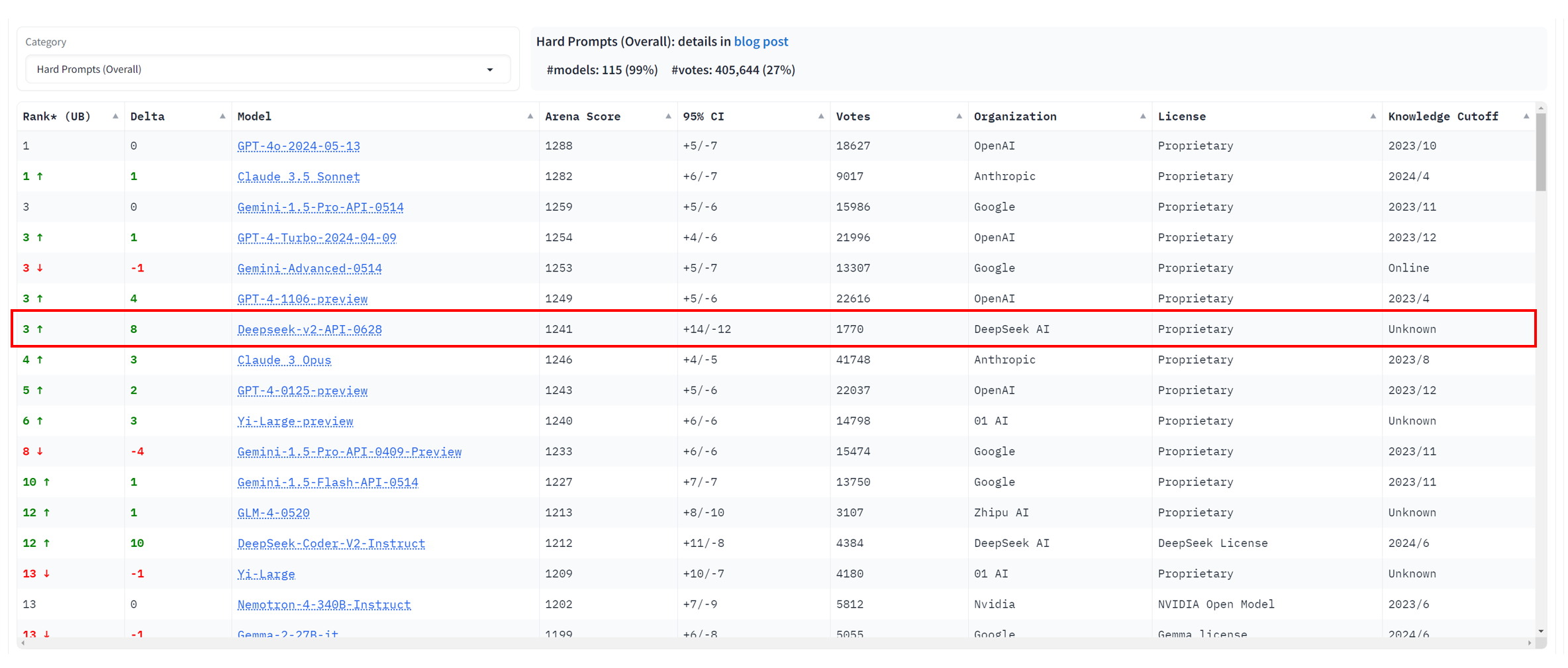 DeepSeek-V2-Chat-0628 has achieved remarkable performance on the LMSYS Chatbot Arena Leaderboard: