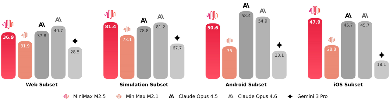 - On Droid: 79.7(M2.5) > 78.9(Opus 4.6)