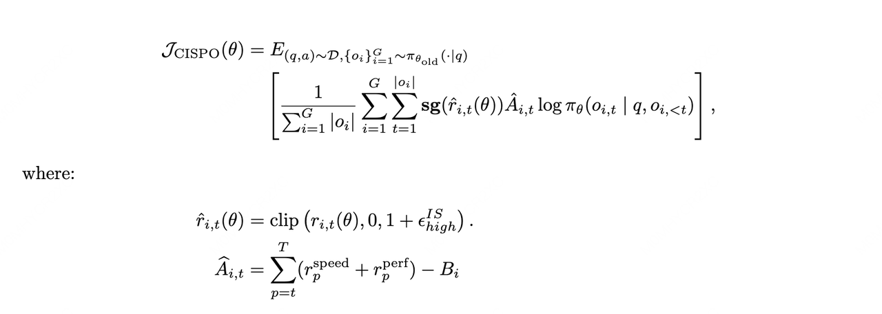 On the algorithm side, we continued using the CISPO algorithm we proposed at the beginning of last year to ensure the stability of MoE models during large-scale training. To address the credit assignment challenge posed by long contexts in agent rollouts, we introduced a process reward mechanism for end-to-end monitoring of generation quality. Furthermore, to deeply align with user experience, we evaluated task completion time through agent trajectories, achieving an optimal trade-off between model intelligence and response speed.